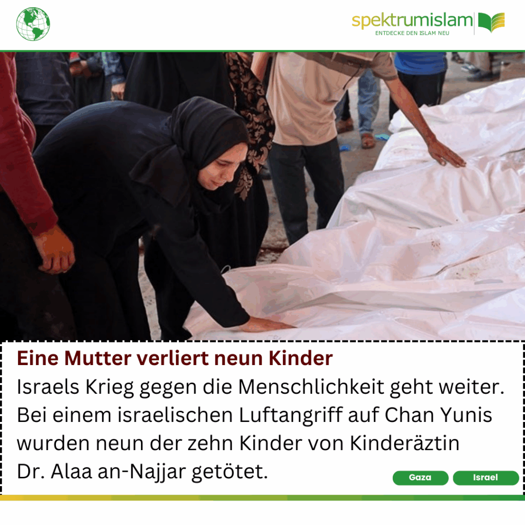 Am Freitag wurde die palästinensische Kinderärztin Dr. Alaa an-Najjar zur wohl tragischsten Figur eines Krieges, in dem die Zivilbevölkerung längst das Hauptziel geworden ist. Bei einem israelischen Luftangriff auf Chan Yunis wurden neun ihrer zehn Kinder getötet. Ihr Ehemann überlebte schwer verletzt und ringt im Krankenhaus mit dem Tod.